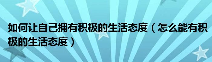 大家好,伊人來為大家解答以上問題。如何讓自己擁有積極的生活態(tài)度,怎么能有積極的生活態(tài)度很多人還不知道,現(xiàn)在讓我們一起來看看吧!