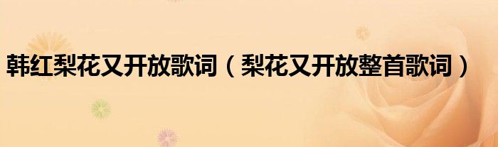 大家好,伊人來(lái)為大家解答以上問(wèn)題。韓紅梨花又開(kāi)放歌詞,梨花又開(kāi)放整首歌詞很多人還不知道,現(xiàn)在讓我們一起來(lái)看看吧!