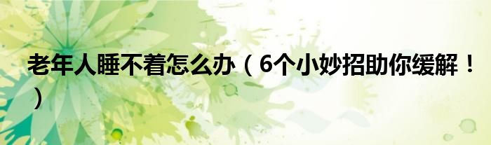 大家好,伊人來為大家解答以上問題。老年人睡不著怎么辦,6個小妙招助你緩解!很多人還不知道,現(xiàn)在讓我們一起來看看吧!