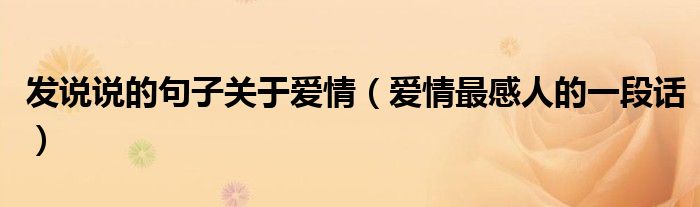 大家好,伊人來為大家解答以上問題。發(fā)說說的句子關(guān)于愛情,愛情最感人的一段話很多人還不知道,現(xiàn)在讓我們一起來看看吧!