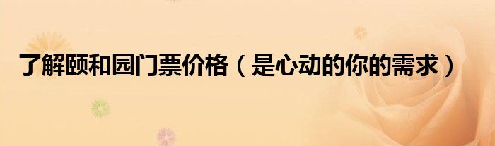 大家好,伊人來為大家解答以上問題。了解頤和園門票價格,是心動的你的需求很多人還不知道,現(xiàn)在讓我們一起來看看吧!