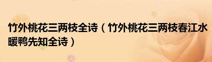 大家好,伊人來為大家解答以上問題。竹外桃花三兩枝全詩,竹外桃花三兩枝春江水暖鴨先知全詩很多人還不知道,現(xiàn)在讓我們一起來看看吧!