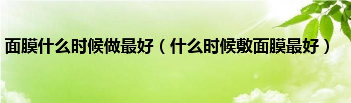 1、效果最好的是晚上9點敷面膜,正好在身體排毒之前。敷完面膜,皮膚可以更好的吸收精華。但是也可以在其他時間段敷面膜。你可以在早上和午睡前起床。
