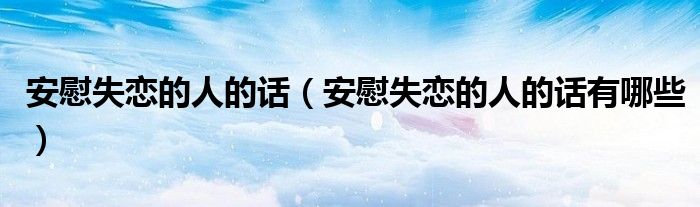 大家好,伊人來為大家解答以上問題。安慰失戀的人的話,安慰失戀的人的話有哪些很多人還不知道,現(xiàn)在讓我們一起來看看吧!