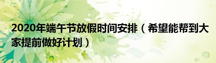 大家好,伊人來為大家解答以上問題。2020年端午節(jié)放假時(shí)間安排,希望能幫到大家提前做好計(jì)劃很多人還不知道,現(xiàn)在讓我們一起來看看吧!