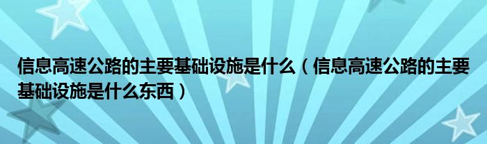 大家好,伊人來為大家解答以上問題。信息高速公路的主要基礎設施是什么,信息高速公路的主要基礎設施是什么東西很多人還不知道,現(xiàn)在讓我們一起來看看吧!