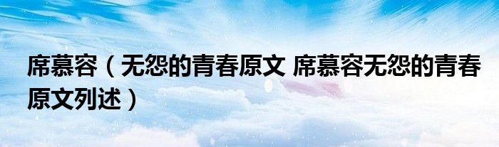 大家好,伊人來(lái)為大家解答以上問(wèn)題。席慕容,無(wú)怨的青春原文 席慕容無(wú)怨的青春原文列述很多人還不知道,現(xiàn)在讓我們一起來(lái)看看吧!