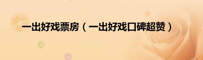 大家好,伊人來(lái)為大家解答以上問(wèn)題。一出好戲票房,一出好戲口碑超贊很多人還不知道,現(xiàn)在讓我們一起來(lái)看看吧!