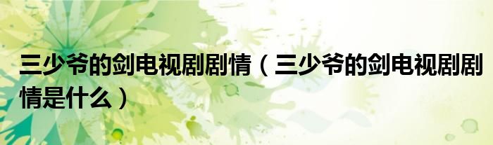 大家好,伊人來為大家解答以上問題。三少爺?shù)膭﹄娨晞∏?,三少爺?shù)膭﹄娨晞∏槭鞘裁春芏嗳诉€不知道,現(xiàn)在讓我們一起來看看吧!