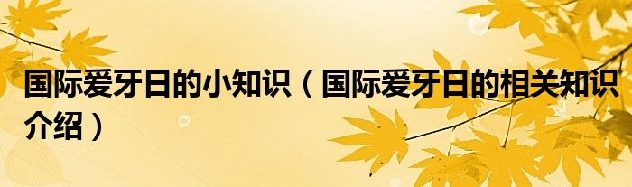 大家好,伊人來為大家解答以上問題。國際愛牙日的小知識,國際愛牙日的相關(guān)知識介紹很多人還不知道,現(xiàn)在讓我們一起來看看吧!