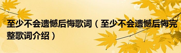 大家好,伊人來(lái)為大家解答以上問(wèn)題。至少不會(huì)遺憾后悔歌詞,至少不會(huì)遺憾后悔完整歌詞介紹很多人還不知道,現(xiàn)在讓我們一起來(lái)看看吧!