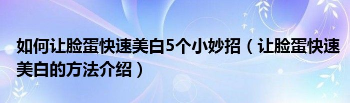 大家好,伊人來為大家解答以上問題。如何讓臉蛋快速美白5個小妙招,讓臉蛋快速美白的方法介紹很多人還不知道,現(xiàn)在讓我們一起來看看吧!