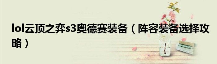 大家好,伊人來為大家解答以上問題。lol云頂之弈s3奧德賽裝備,陣容裝備選擇攻略很多人還不知道,現(xiàn)在讓我們一起來看看吧!