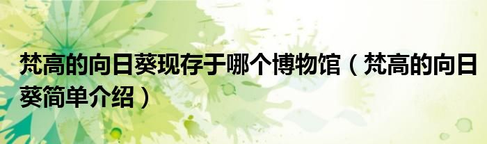 1、梵高的《向日葵》現(xiàn)收藏于德國(guó)慕尼黑新美術(shù)館、英國(guó)倫敦國(guó)家美術(shù)館、日本東京星勛美術(shù)館、荷蘭阿姆斯特丹梵高美術(shù)館、美國(guó)費(fèi)城美術(shù)館。