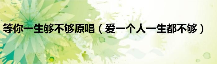 大家好,伊人來為大家解答以上問題。等你一生夠不夠原唱,愛一個人一生都不夠很多人還不知道,現(xiàn)在讓我們一起來看看吧!