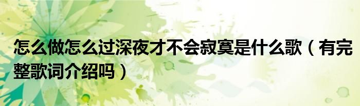 大家好,伊人來為大家解答以上問題。怎么做怎么過深夜才不會(huì)寂寞是什么歌,有完整歌詞介紹嗎很多人還不知道,現(xiàn)在讓我們一起來看看吧!