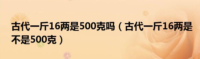 大家好,伊人來(lái)為大家解答以上問(wèn)題。古代一斤16兩是500克嗎,古代一斤16兩是不是500克很多人還不知道,現(xiàn)在讓我們一起來(lái)看看吧!