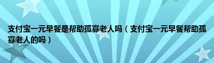 大家好,伊人來為大家解答以上問題。支付寶一元早餐是幫助孤寡老人嗎,支付寶一元早餐幫助孤寡老人的嗎很多人還不知道,現在讓我們一起來看看吧!