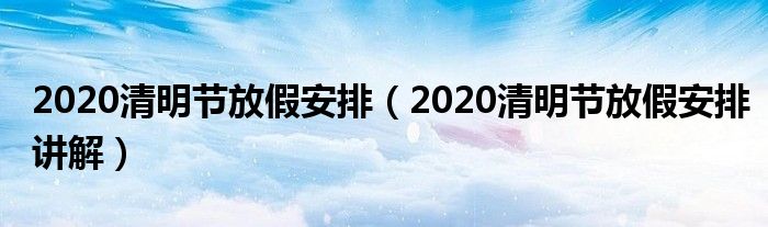 大家好,伊人來為大家解答以上問題。2020清明節(jié)放假安排,2020清明節(jié)放假安排講解很多人還不知道,現(xiàn)在讓我們一起來看看吧!