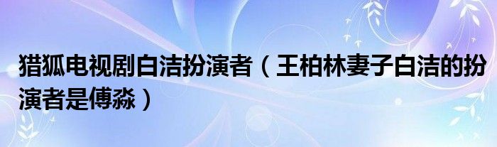 大家好,伊人來為大家解答以上問題。獵狐電視劇白潔扮演者,王柏林妻子白潔的扮演者是傅淼很多人還不知道,現(xiàn)在讓我們一起來看看吧!