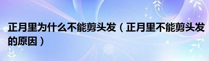 大家好,伊人來為大家解答以上問題。正月里為什么不能剪頭發(fā),正月里不能剪頭發(fā)的原因很多人還不知道,現在讓我們一起來看看吧!
