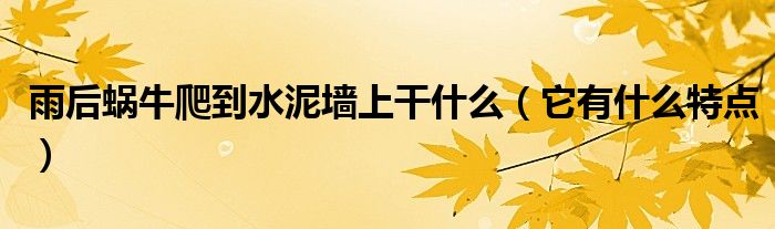 大家好,伊人來為大家解答以上問題。雨后蝸牛爬到水泥墻上干什么,它有什么特點很多人還不知道,現(xiàn)在讓我們一起來看看吧!