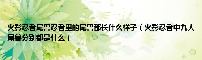 大家好,伊人來(lái)為大家解答以上問(wèn)題。火影忍者尾獸忍者里的尾獸都長(zhǎng)什么樣子,火影忍者中九大尾獸分別都是什么很多人還不知道,現(xiàn)在讓我們一起來(lái)看看吧!