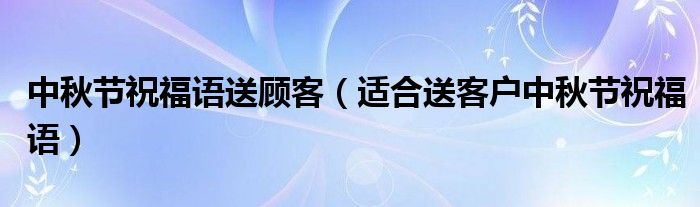 大家好,伊人來為大家解答以上問題。中秋節(jié)祝福語送顧客,適合送客戶中秋節(jié)祝福語很多人還不知道,現(xiàn)在讓我們一起來看看吧!