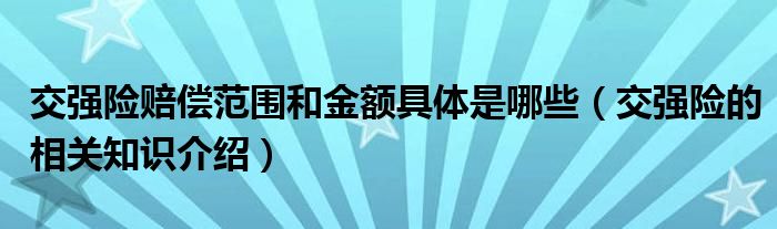 大家好,伊人來為大家解答以上問題。交強險賠償范圍和金額具體是哪些,交強險的相關知識介紹很多人還不知道,現(xiàn)在讓我們一起來看看吧!