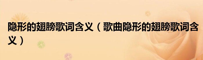 大家好,伊人來為大家解答以上問題。隱形的翅膀歌詞含義,歌曲隱形的翅膀歌詞含義很多人還不知道,現(xiàn)在讓我們一起來看看吧!