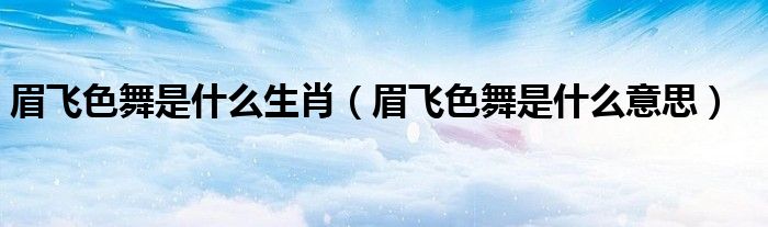 大家好,伊人來為大家解答以上問題。眉飛色舞是什么生肖,眉飛色舞是什么意思很多人還不知道,現(xiàn)在讓我們一起來看看吧!