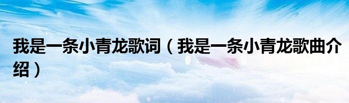 大家好,伊人來為大家解答以上問題。我是一條小青龍歌詞,我是一條小青龍歌曲介紹很多人還不知道,現(xiàn)在讓我們一起來看看吧!