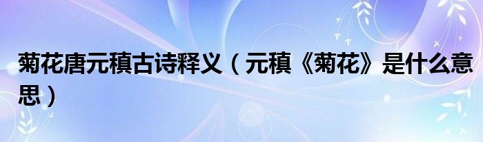 大家好,伊人來為大家解答以上問題。菊花唐元稹古詩釋義,元稹《菊花》是什么意思很多人還不知道,現(xiàn)在讓我們一起來看看吧!