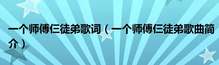 大家好,伊人來(lái)為大家解答以上問題。一個(gè)師傅仨徒弟歌詞,一個(gè)師傅仨徒弟歌曲簡(jiǎn)介很多人還不知道,現(xiàn)在讓我們一起來(lái)看看吧!