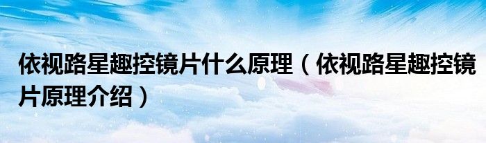 大家好,伊人來為大家解答以上問題。依視路星趣控鏡片什么原理,依視路星趣控鏡片原理介紹很多人還不知道,現(xiàn)在讓我們一起來看看吧!