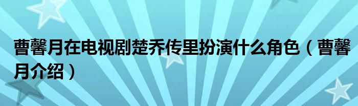大家好,伊人來(lái)為大家解答以上問題。曹馨月在電視劇楚喬傳里扮演什么角色,曹馨月介紹很多人還不知道,現(xiàn)在讓我們一起來(lái)看看吧!