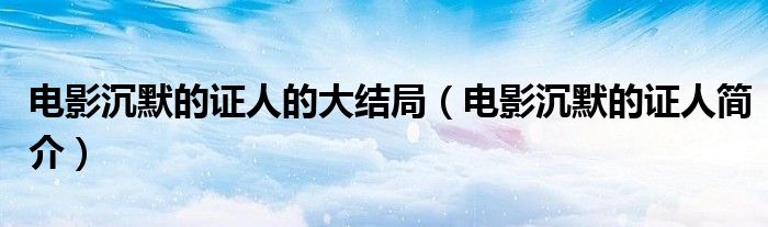 大家好,伊人來(lái)為大家解答以上問(wèn)題。電影沉默的證人的大結(jié)局,電影沉默的證人簡(jiǎn)介很多人還不知道,現(xiàn)在讓我們一起來(lái)看看吧!