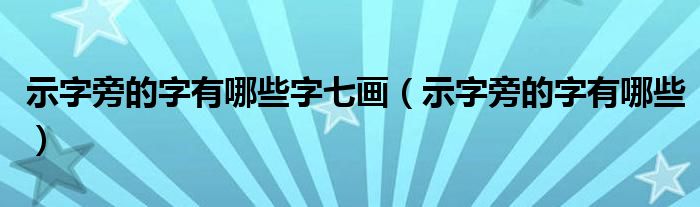 大家好,小生來為大家講解下。示字旁的字有哪些字七畫,示字旁的字有哪些很多人還不知道,現(xiàn)在讓我們一起來看看吧!