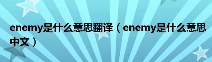 大家好,小生來為大家講解下。enemy是什么意思翻譯,enemy是什么意思中文很多人還不知道,現(xiàn)在讓我們一起來看看吧!