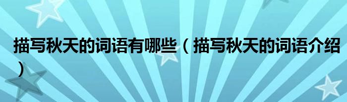 大家好,伊人來為大家解答以上問題。描寫秋天的詞語有哪些,描寫秋天的詞語介紹很多人還不知道,現(xiàn)在讓我們一起來看看吧!