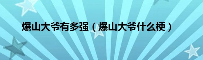 大家好,小生來為大家講解下。爆山大爺有多強,爆山大爺什么梗很多人還不知道,現(xiàn)在讓我們一起來看看吧!