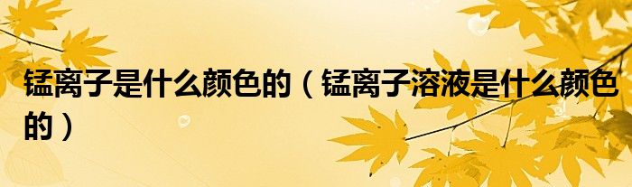 大家好,小生來為大家講解下。錳離子是什么顏色的,錳離子溶液是什么顏色的很多人還不知道,現(xiàn)在讓我們一起來看看吧!