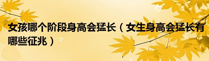 大家好,小生來為大家講解下。女孩哪個(gè)階段身高會(huì)猛長,女生身高會(huì)猛長有哪些征兆很多人還不知道,現(xiàn)在讓我們一起來看看吧!