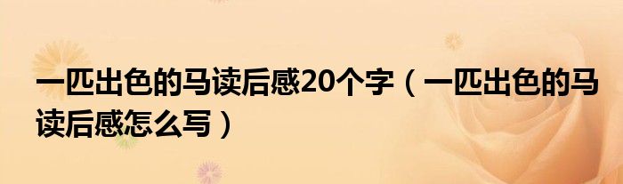 大家好,小生來(lái)為大家講解下。一匹出色的馬讀后感20個(gè)字,一匹出色的馬讀后感怎么寫很多人還不知道,現(xiàn)在讓我們一起來(lái)看看吧!