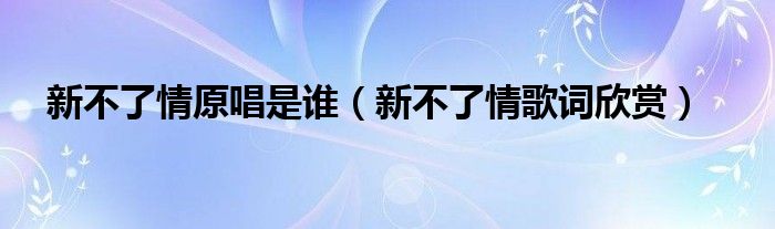 大家好,伊人來(lái)為大家解答以上問(wèn)題。新不了情原唱是誰(shuí),新不了情歌詞欣賞很多人還不知道,現(xiàn)在讓我們一起來(lái)看看吧!