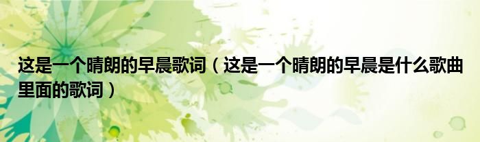 大家好,伊人來(lái)為大家解答以上問(wèn)題。這是一個(gè)晴朗的早晨歌詞,這是一個(gè)晴朗的早晨是什么歌曲里面的歌詞很多人還不知道,現(xiàn)在讓我們一起來(lái)看看吧!