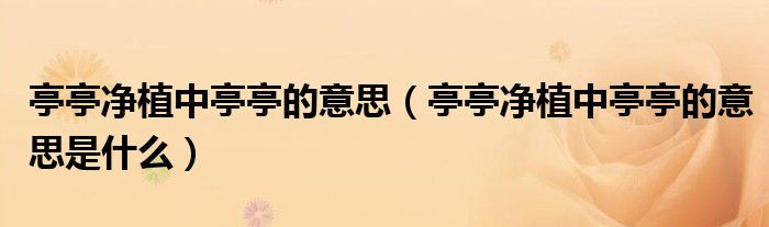 大家好,伊人來為大家解答以上問題。亭亭凈植中亭亭的意思,亭亭凈植中亭亭的意思是什么很多人還不知道,現(xiàn)在讓我們一起來看看吧!