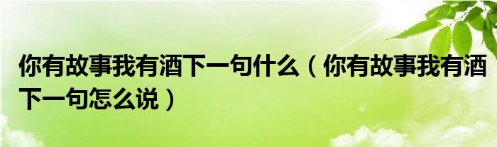 1、如果你有故事,我有酒。下一句是“你為什么要坐一整夜聊天?”原話應(yīng)該是“你有故事,你有酒,我可以陪你聊一晚上。”這句話的下一句是“我有故事,我有酒。你愿意和我一起去嗎?”