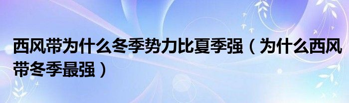 大家好,伊人來為大家解答以上問題。西風帶為什么冬季勢力比夏季強,為什么西風帶冬季最強很多人還不知道,現(xiàn)在讓我們一起來看看吧!