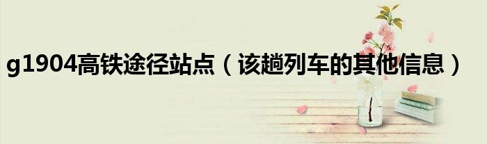 大家好,伊人來為大家解答以上問題。g1904高鐵途徑站點(diǎn),該趟列車的其他信息很多人還不知道,現(xiàn)在讓我們一起來看看吧!